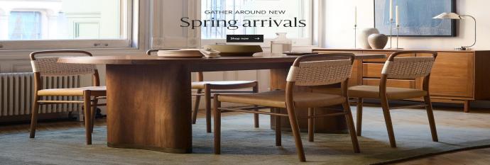 This mid-century modern round dining table is perfect for smaller spaces. The sleek design and warm walnut finish will complement any decor.